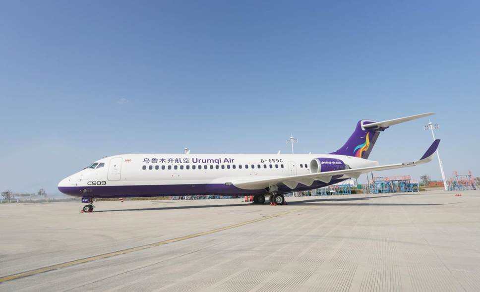 图说:中国商飞公司向新海航航空集团旗下乌鲁木齐航空交付首架C909飞机