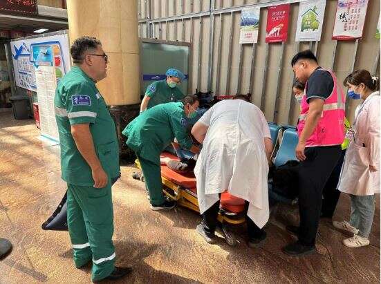 8月19日,在克拉玛依古海机场,一位旅客乘坐G52784航班准备飞往库尔勒,在航班即将登机时突感不适,出现头晕、胸闷并伴有呕吐现象,当日服务岗位人员及时发现后立即将情况报给当日值班领导。得知情况紧急,值班领导要求机场工作人员密切关注旅客情况,并做好急救措施,务必保证旅客的生命安全。工作人员联系机场航医测量血压,报备应急救援指挥中心拨打120救助旅客,经过驻场航医检查,旅客血压偏低。值班领导临时调配人员配合航医做好应急处置措施,并关注旅客情况。急救中心人员迅速到达现场,经过现场基础检查后将旅客通过担架运送至救护车前往医院做进一步治疗。