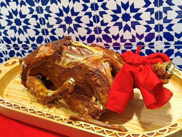 作为连接欧亚的空中枢纽,新疆机场集团天惠商业有限责任公司致力于将地域文化与航空服务深度融合,让航站楼成为展示新疆魅力的"第一窗口"。此次亮相的烤全羊,是机场精心打造的"丝路美食体验项目"核心内容﹣﹣精选1周岁以内的肥羔羊,经精面、盐水、姜黄、胡椒粉和孜然粉等传统调料均匀涂抹,再用木棍穿起放入特制馕坑焖烤1小