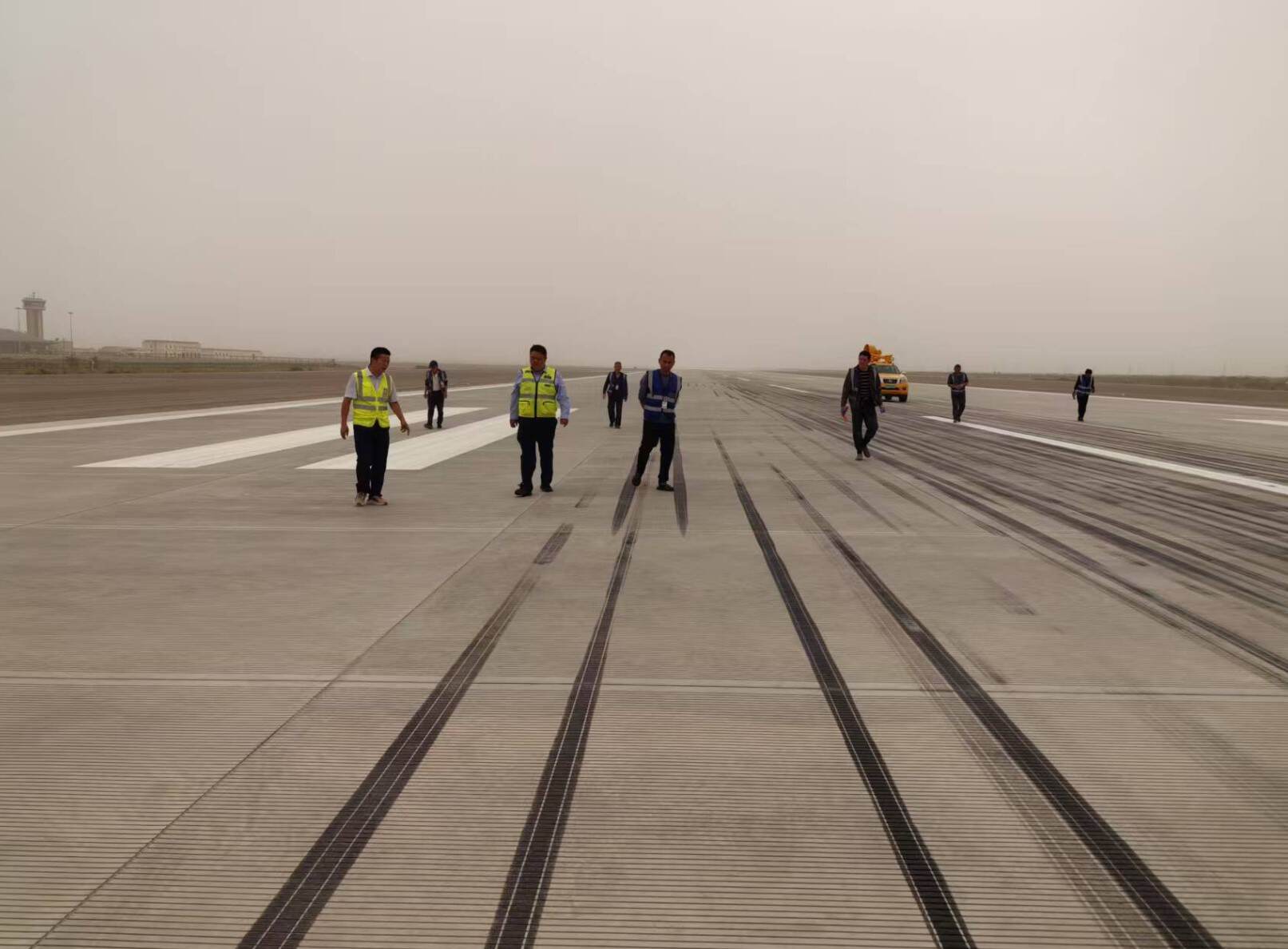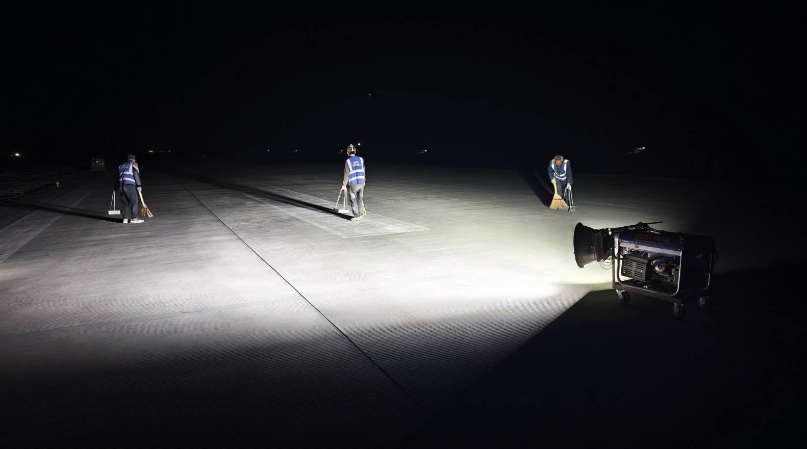 距今且末玉都机场已开航九年,跑道嵌缝料部分破损、裂缝。本次作业完成跑道480号至625号板块、滑行道、04号跑道接地带区域的嵌缝料更换,共计更换嵌缝料长度19282延米。在每日航班结束夜间12点至清晨8点开展作业,由场务人员带领施工人员经塔台同意后进入跑道进行作业,场务人员在现场进行全程监督,每日作业后对作业范围、区域进行FOD清扫,每日保障航班前场务员对跑道作业区域进行再次检查。施工过程中,作业人员严格遵循民航相关技术标准和规范,选用高性能、耐候性强的优质嵌缝材料,并采用专用工具清理、开槽、填充,确保新旧嵌缝粘结牢固、密封严实、表面平整美观。6月7日,由机场领导带队组织场务人员对更换区域进行全面徒步检查验收。