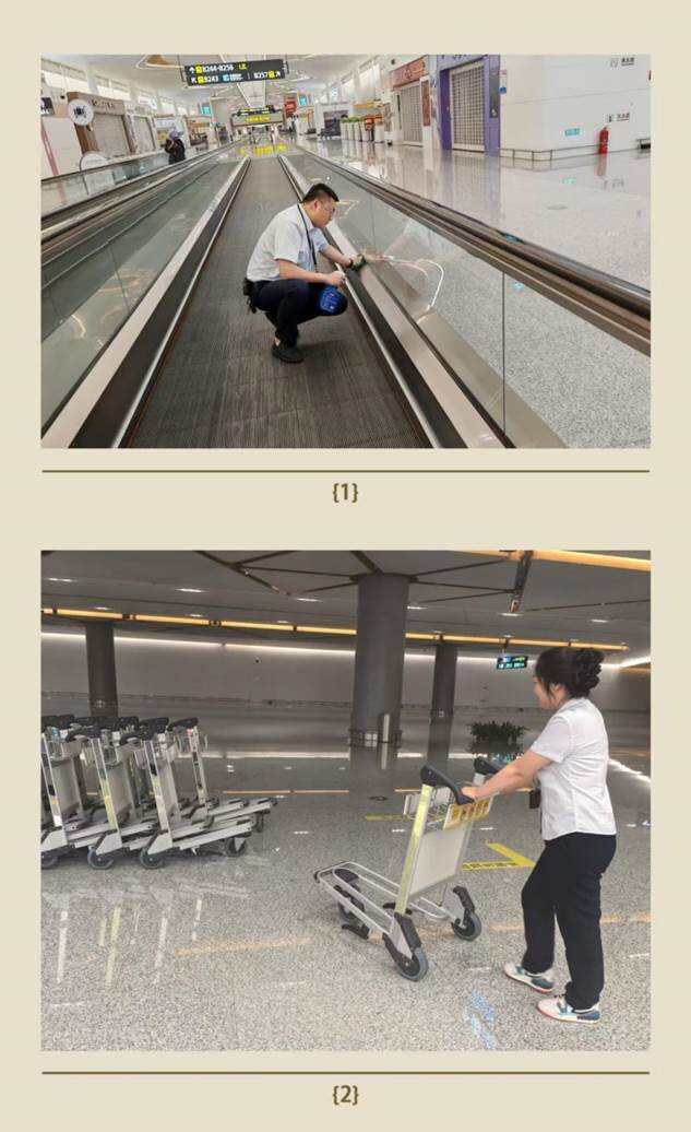 团队以“旅客体验”为核心,创新实施“动态清洁标准”,对整个北航站楼区域实行网格化管理。每天分时段巡查航站楼整体范围保洁、设备等细节,现场督促引导物业保洁人员正规操作流程,联合物业建立“网格化、区域化、绩效考核管理”等闭环机制。这不仅显著提升了物业公司的服务质量,更让旅客满意度大幅跃升——每一个细节的打磨,都是对机场运行品质的无声守护。