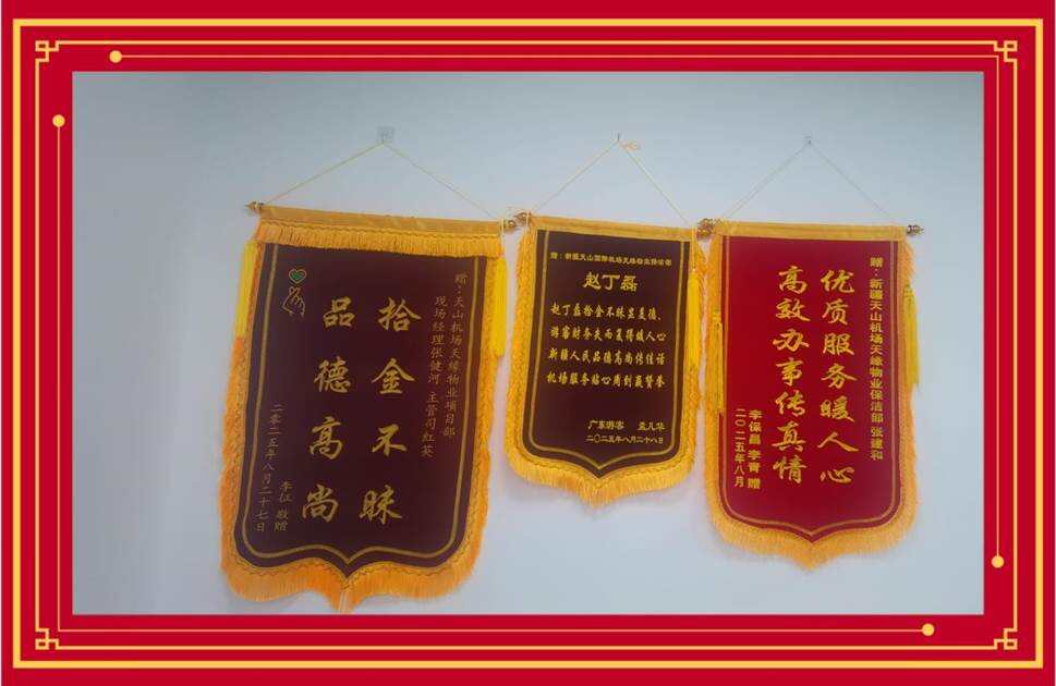 在乌鲁木齐天山国际国际机场里每天都在上演着许多感人的故事,一封表扬信,一面锦旗或是一段简短的文字都鲜活且炙热地记录着每一声由衷的感谢和每一次真诚的认可,这些都将化为天惠商业公司物业人员心中永不褪色的工作记忆,照亮平凡却温暖了日常。