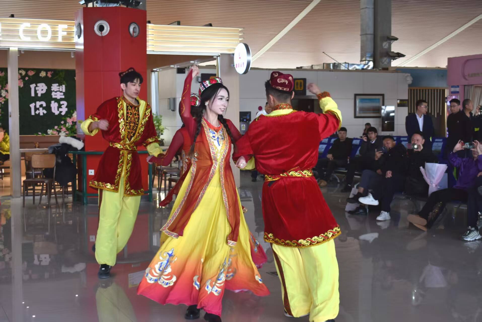 为庆祝这一辉煌成就,伊犁伊宁国际机场在候机楼内联合南方航空、春秋航空、成都航空和华夏航空共同举办了隆重而热烈的庆祝活动。活动现场气氛喜庆,精彩的钢琴弹唱、民族歌舞表演以及丰富的互动环节,吸引了众多旅客驻足参与,共同见证了这一荣耀时刻。
