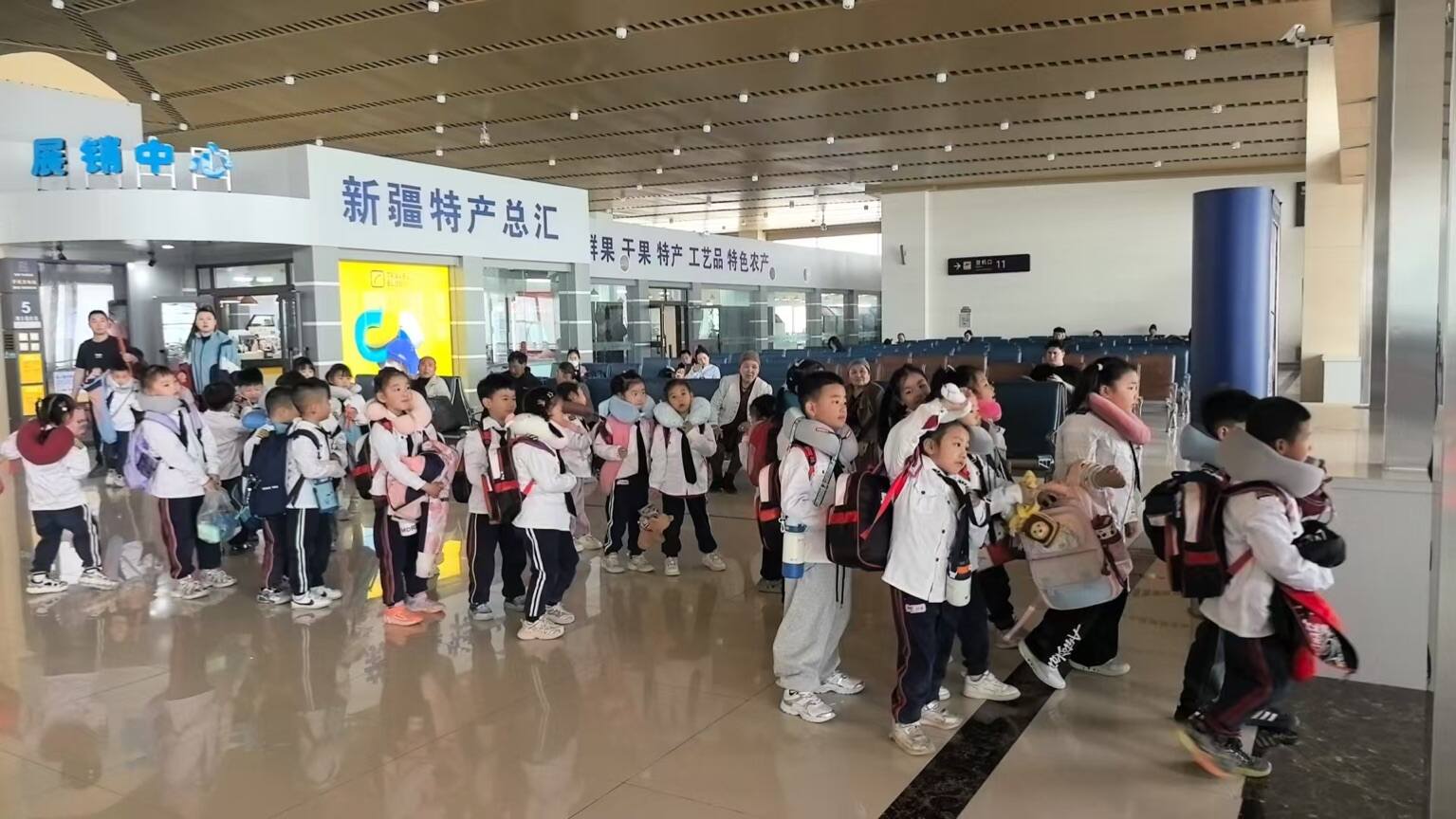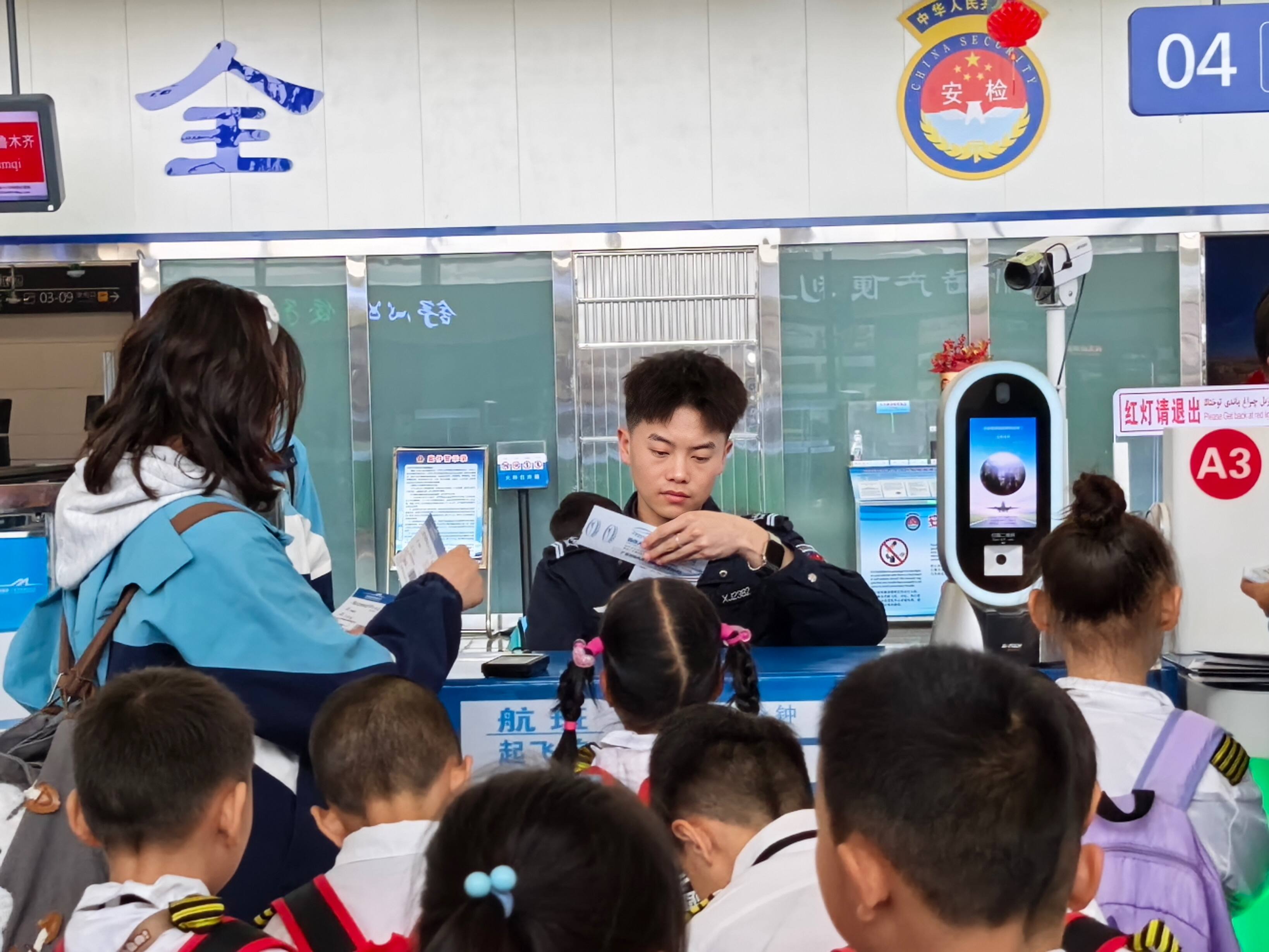 从值机区域到安检通道,再到候机登机口,库尔勒梨城机场各部门无缝衔接、默契配合,高效保障研学团顺利通行。工作人员全程陪伴,像“临时家长”一样细心照看,让带队老师倍感安心。萌娃们在欢声笑语中顺利登机,挥手告别时,小脸上洋溢着对阿勒泰雪山草原的无限向往。