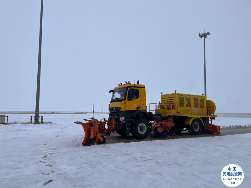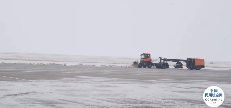 中国民用航空网讯(通讯员 香港 张家乐)受冷空气影响,11月8日昭苏机场迎来冬季的第一场雪。机场跑道、机坪、道面大面积堆积雪浆,降雪厚度3CM左右,根据天气状况,昭苏机场立即采取应对措施,开展2022年冬季首次除冰雪作业。