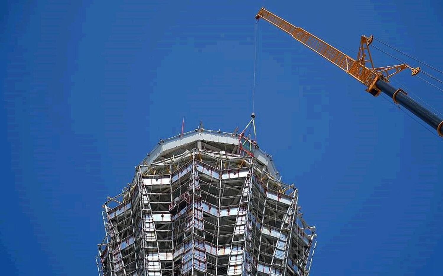 新建塔台项目用地面积约6932平方米,建筑高度99.9米,比机场现有塔台高53.9米,明室玻璃共24块,单块宽2.3米、高5.5米、重量约为1.4吨。在塔台的外立面,玻璃幕墙总面积约6894平方米,幕墙采用了条带式玻璃、铝板结合的幕墙系统形式,包含12道环绕式龙骨,幕墙均为中空半钢化双夹胶玻璃。塔台整体计划使用1752块玻璃,总重量约103吨,相当于100辆家用汽车重量。在近百米高空吊装玻璃,吊重大、吊运难、拼装空间有限,对加工及安装的精度要求极高。玻璃预埋基座随主体施工预埋到主体结构内,后续工序全部围绕玻璃尺寸施工,误差均控制在1毫米内。