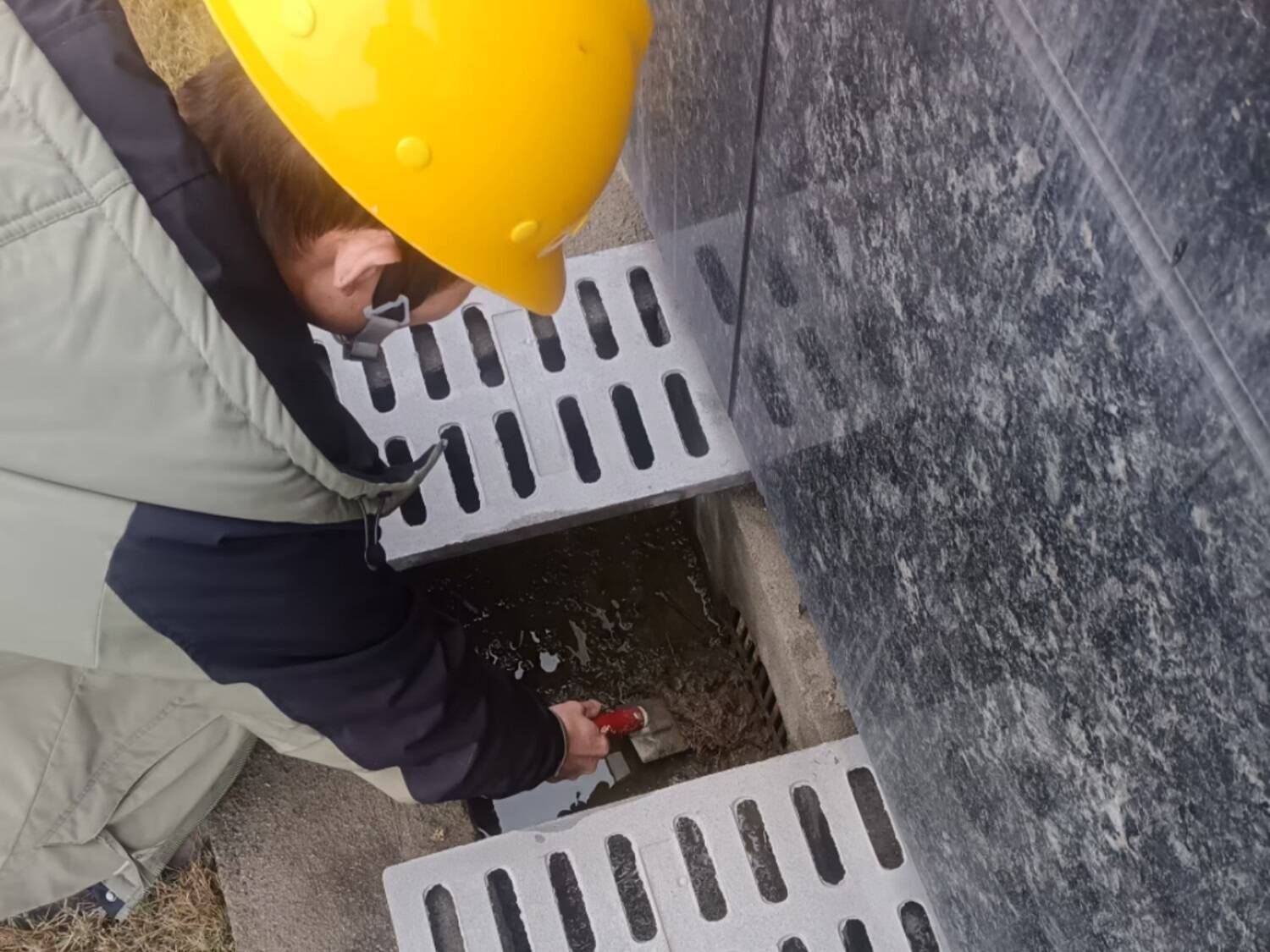 精准排查,落水口清障保畅通。A 栋、C 栋部分落水口被泥沙堵塞,B 栋屋面排水沟也有少量落叶、积土。公司终端部综合维修队迅速响应,采用人工清掏等方式,连续作业4小时,累计排查67处落水口,清理5个堵塞点,让排水管道恢复畅通,并加固了松动的落水口盖板。