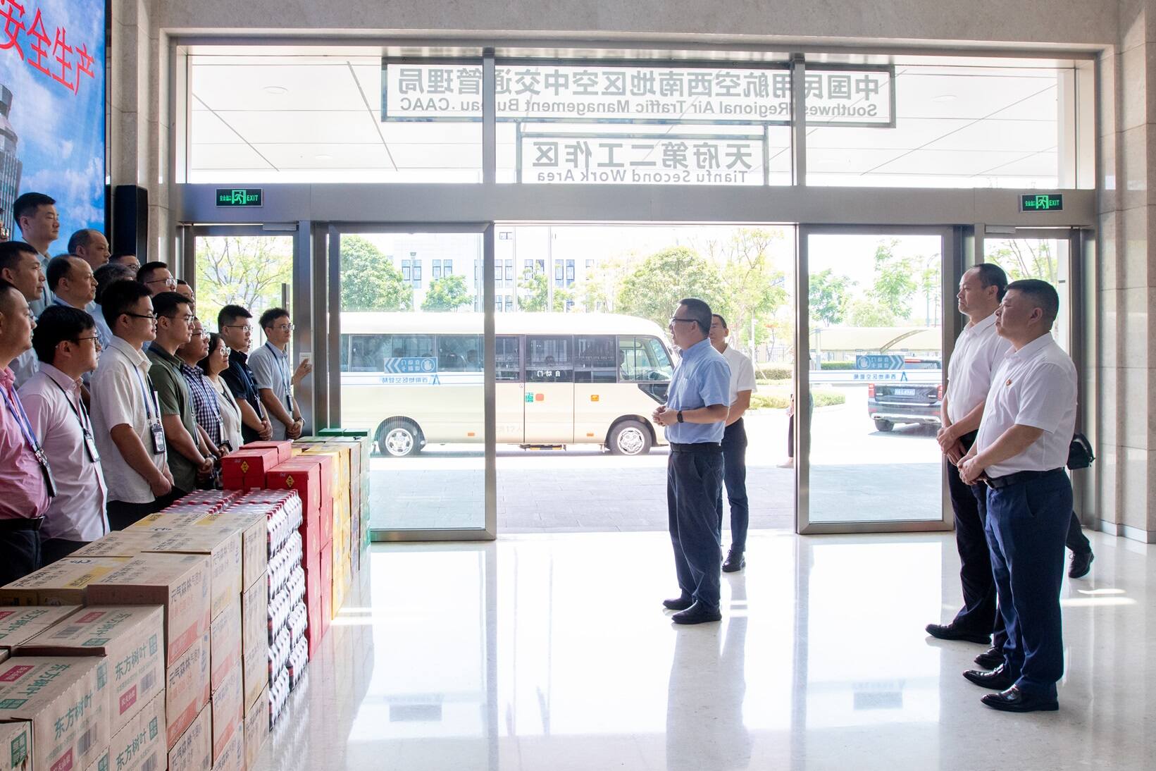 7月30日下午,民航西南地区管理局副局长李小虎一行前往西南空管局天府工作区现场,看望慰问坚守岗位的一线职工,并为大家送去清凉慰问品。