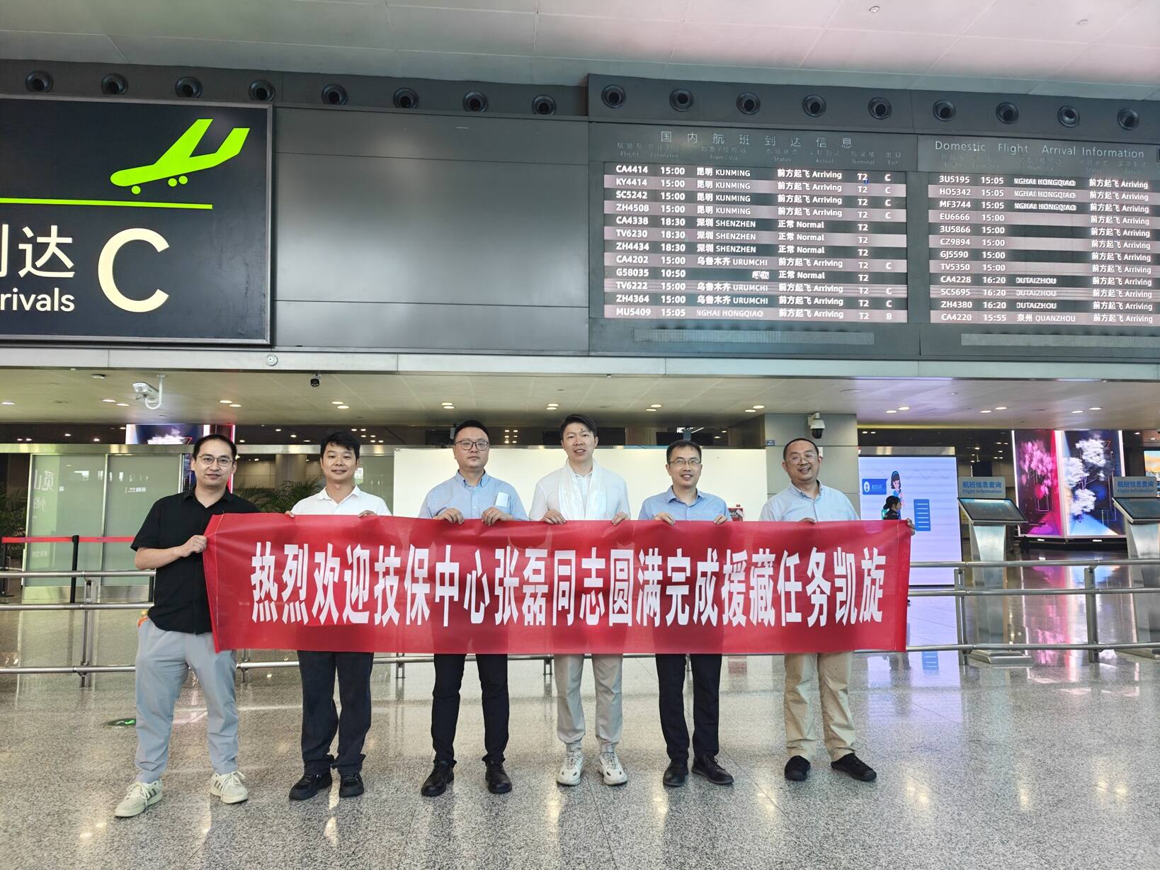 2025年8月5日,随着TBA9765安全落地成都双流国际机场,中央单位第十批援藏干部人才张磊结束了1754天的援藏工作,圆满完成了援藏任务!西南空管局技保中心干部职工代表隆重欢迎张磊同志凯旋。