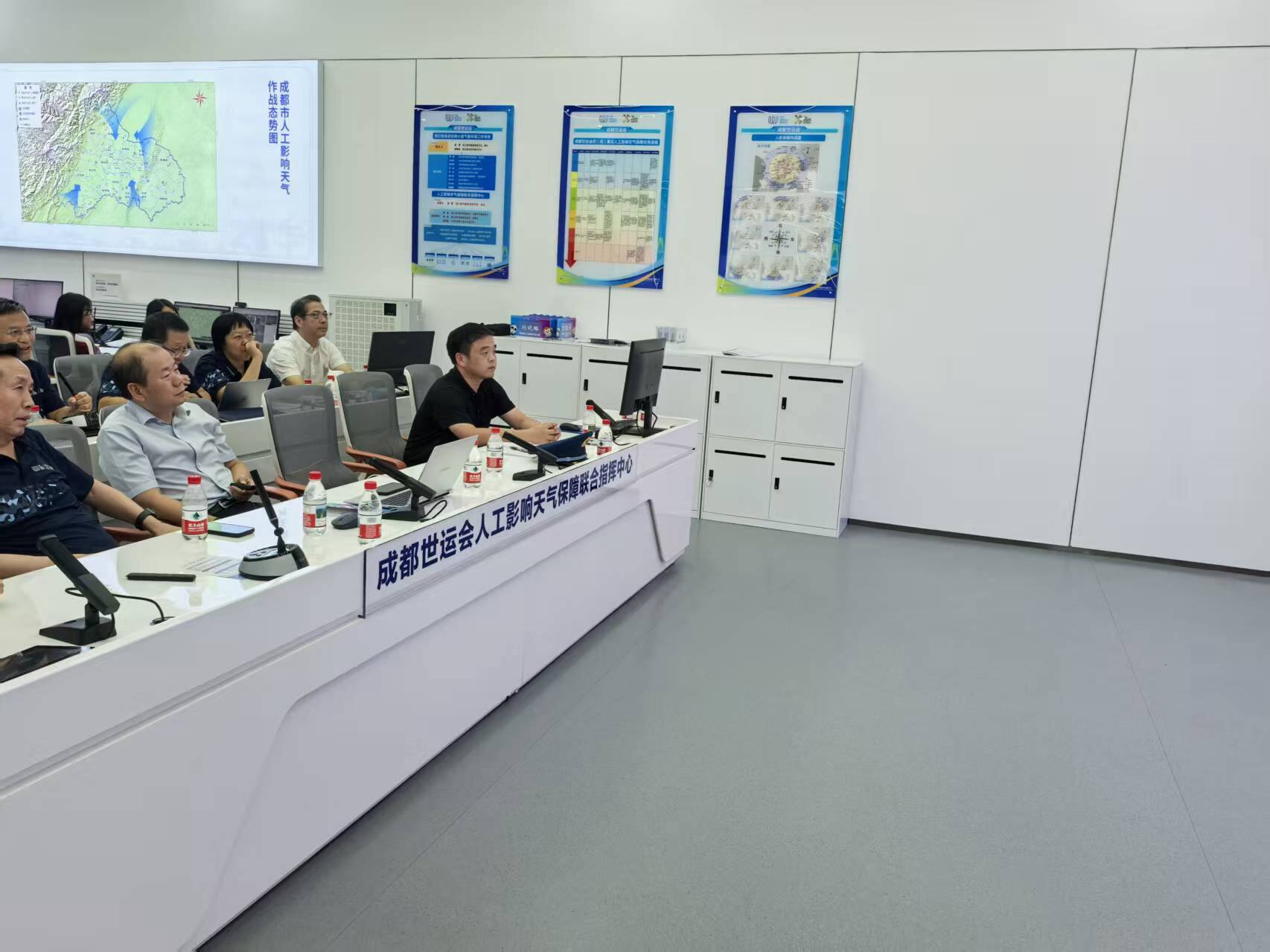 开幕式前夕,为全力保障人工影响天气炮射作业和通用航空作业,区管中心选派业务骨干,前往成都市气象台成都世运会人工影响天气保障联合指挥中心,与气象部门通力合作,联合制定世运会开幕式人工影响天气保障预案,协助人工影响天气工作实施。“世运会开幕式成功举办的背后,有无数工作人员在默默奉献,能够参与到其中我感到非常荣幸和自豪。”前往成都市气象台参与世运会人工影响天气现场协调工作的区管一室副主任吴畏寒说。