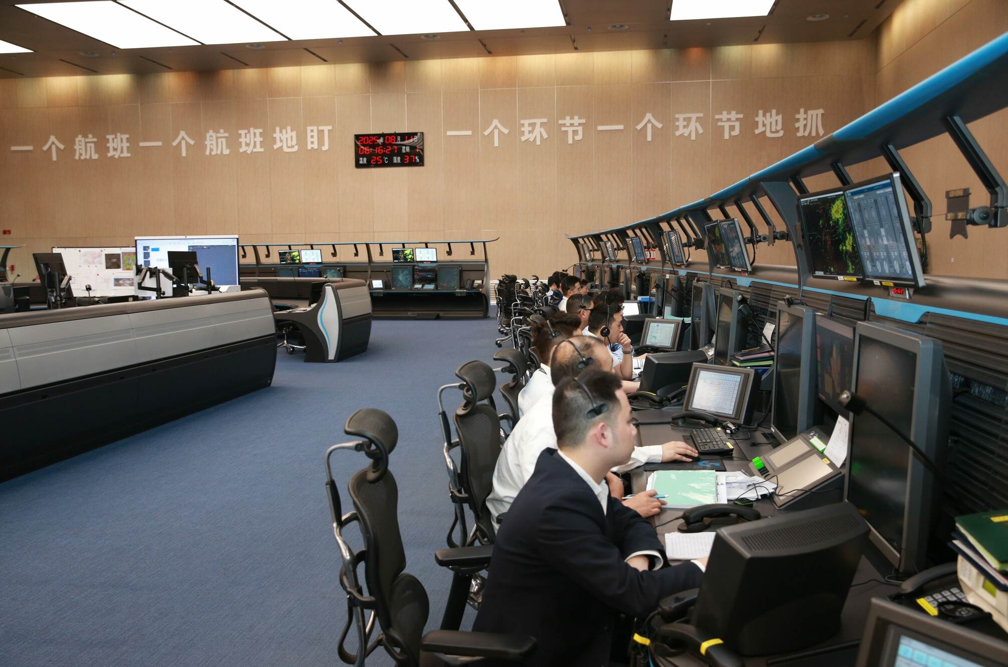 “流量席管制员梳理出下一日涉会航班明细,通过运协委与机场、航司和其他地区空管局沟通,建立信息通报协同机制,确保涉会航班安全和正点。”空管中心流量管理室运行监控室主任陈思睿介绍。流量管理部门还针对近期雷雨季建立专项保障机制,对可能发生返航备降的涉会航班开展协调处置工作。情报部门严格审核航行通告,同时监控全国重要空域,及时协同航司做好信息通报。