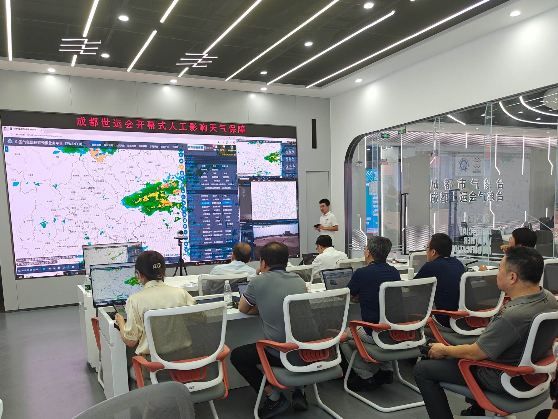 气象服务方面,西南空管局派出以首席预报员为代表的4名高级工程师加入赛事气象服务团队,做好世运会期间的航空气象服务。自7月31日起,西南空管局每日发布世运会保障专题航空天气预报。开幕式当天,在7:00至21:00时段对成都双流、天府两场实施逐小时滚动天气预报,为世运会组委会提供统一发布的气象信息。