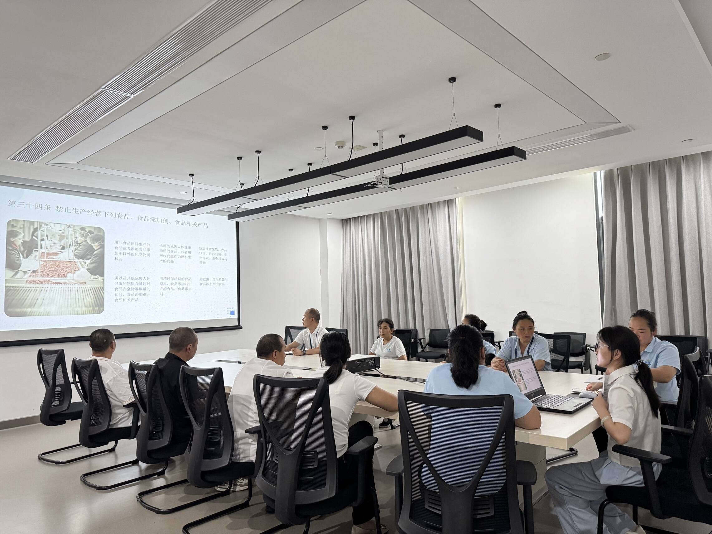 本次培训聚焦三大核心内容,一是法规解读。系统讲解《食品安全法》最新修订条款,《食品安全法》的制定与实施,食品安全标准;二是实操规范。通过案例分析演示食材验收、加工操作、留样管理等关键环节标准流程,重点强调夏季食材存储与病媒生物防治要点;三是应急管理。模拟食源性疾病突发事件处置流程,强化信息上报、现场保护等环节的标准化响应机制。