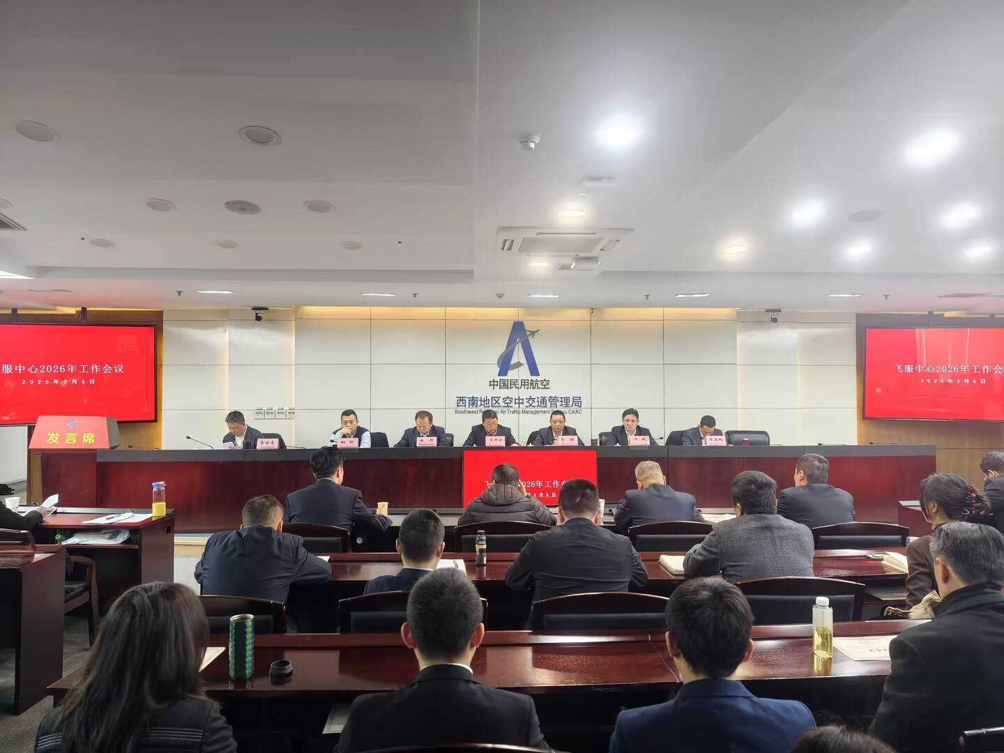 2026年2月6日,西南空管局飞服中心召开2026年工作会议。会议总结了2025年及“十四五”期间主要工作情况,分析当前和未来形势以及存在的问题,部署2026年重点工作。西南空管局副总工李洪安出席会议并讲话。安全部和空管部领导参加会议并做工作点评。飞服中心主任郑键作了题为《协同智慧锻造中枢 精耕服务强化效能 以飞服新质效助力西南空管“十五五”高质量发展》的工作报告。飞服中心党委书记赵彤主持会议,会议还就春运保障要求、党风廉政建设作出强调。