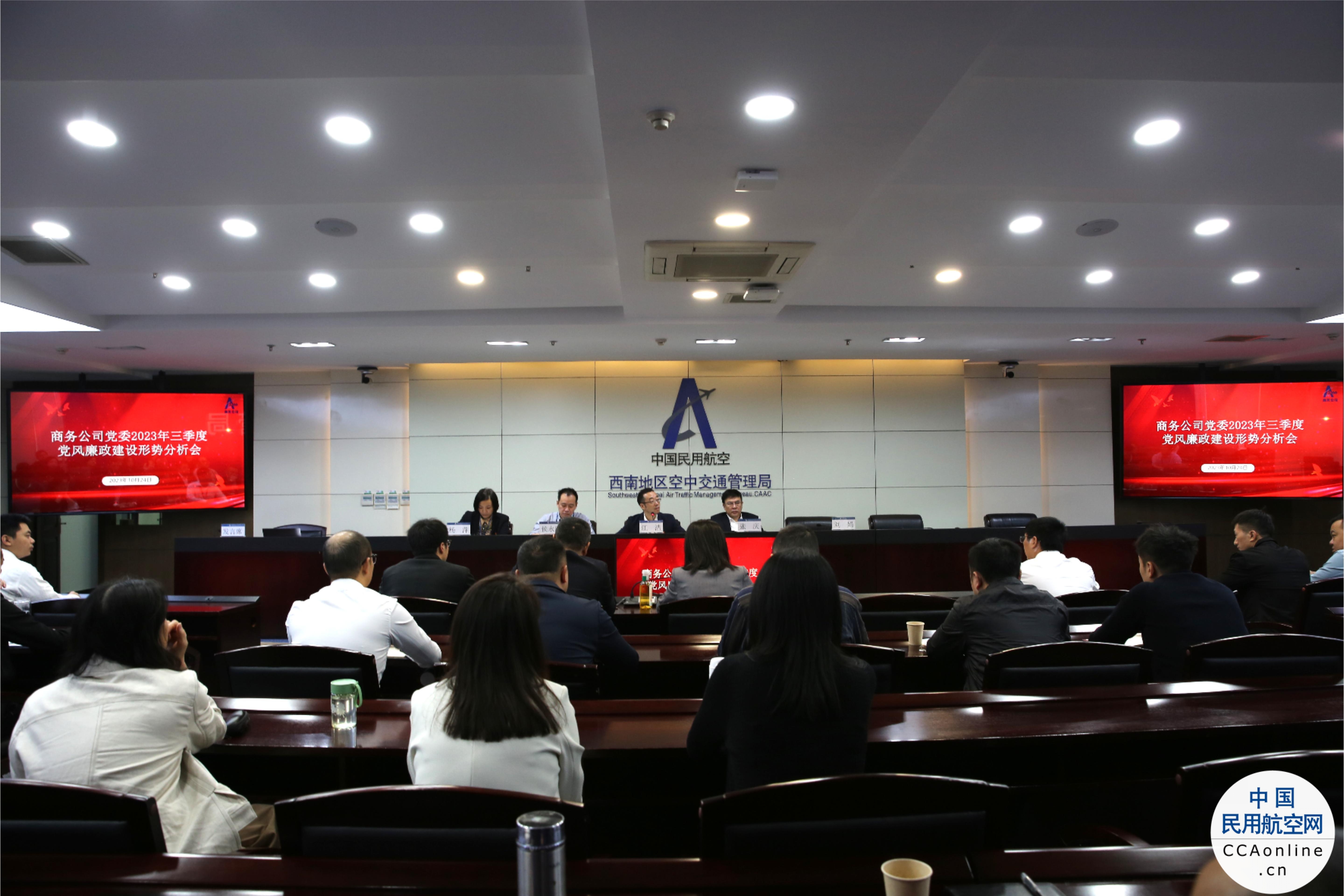10月24日上午,西南空管局商务公司党委组织召开2023年三季度党风廉政建设形势分析会暨警示教育会。党委书记江浩主持会议。公司党委委员,全体党员、群众代表参加,局纪委办同志列席会议。